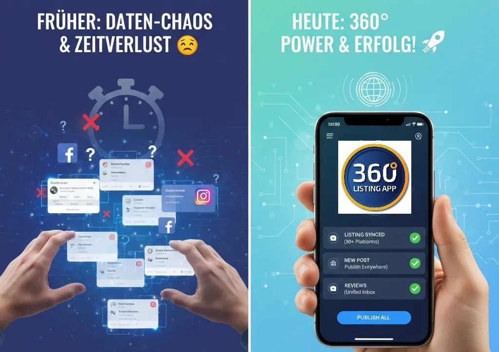 Mit der 360° Listing & Posting App kombinieren Sie automatisierte Datenpflege mit aktivem Marketing und direktem Kundendialog – alles aus einer Hand.